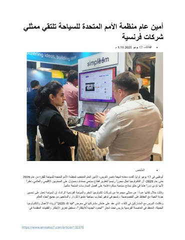نيسحت ىلع لمعت ةحايسلا نإ ،ةدئارلا ةيسنرفلا ةحايسلاو رفسلا ايجولونكت تاكرش نم ةعومجم يلثمم نم ً ًَاددع اهئاقل للاخ تلاقو