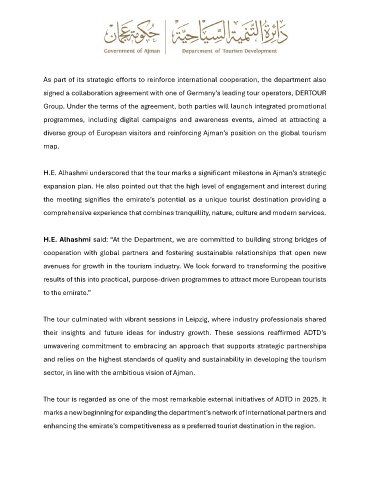 diverse group of European visitors and reinforcing Ajman’s position on the global tourism