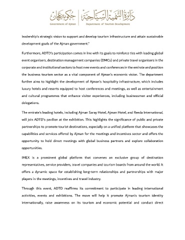 the business tourism sector as a vital component of Ajman’s economic vision. The department