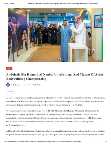 5/2/25, 2:11 PM Abdulaziz bin Humaid Al Nuaimi unveils logo and mascot of Asian Bodybuilding Championship | Web Release