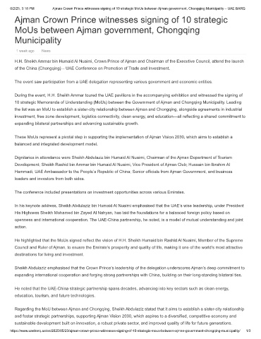 https://www.uaebarq.ae/en/2025/05/23/ajman-crown-prince-witnesses-signing-of-10-strategic-mous-between-ajman-government-chongqing-municipality/ 1/3