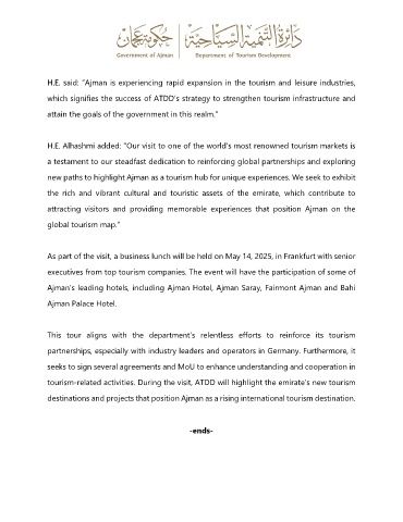 tourism-related activities. During the visit, ATDD will highlight the emirate’s new tourism