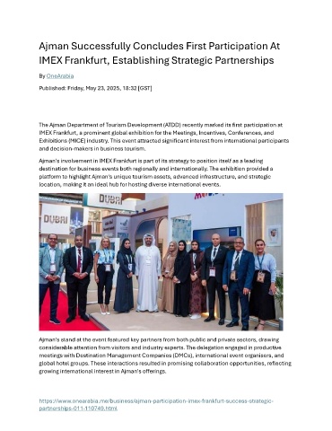 Ajman's involvement in IMEX Frankfurt is part of its strategy to position itself as a leading
