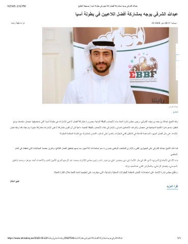 https://www.alkhaleej.ae/2025-05-23/ﺔﺿﺎﯾر/ﻲﻠﺣﻣ-ﺔﺿﺎﯾر/5927536-ﺎﯾﺳآ-ﺔﻟوطﺑ-ﻲﻓ-نﯾﺑﻋﻼﻟا-لﺿﻓأ-ﺔﻛرﺎﺷﻣﺑ-ﮫﺟوﯾ-ﻲﻗرﺷﻟا-ﷲدﺑﻋ 1/1