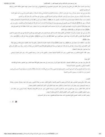 وﯾﺎﻣ ﻲﻓ نﯾﺻﻟا ﻰﻟإ ،ﷲ ﮫظﻔﺣ ،ﺔﻟودﻟا سﯾﺋر ،نﺎﯾﮭﻧ لآ دﯾاز نﺑ دﻣﺣﻣ ﺦﯾﺷﻟا وﻣﺳﻟا بﺣﺎﺻ ةرﺎﯾز ﺎھزرﺑأ ،نﯾدﻠﺑﻟا نﯾﺑ ﺔﻣﮭﻣﻟا تارﺎﯾزﻟا ترﻣﺗﺳا» :ًﻼﺋﺎﻗ نﺎﻣﺟﻋ دﮭﻋ