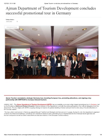 https://www.traveldailynews.com/organizations/ajman-department-of-tourism-development-concludes-successful-promotional-tour-in-germany/ 1/4