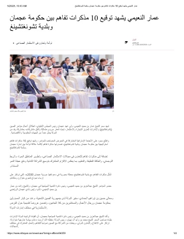 5/26/25, 10:43 AM                            ﻎﻧﯾﺷﺗﻐﻧوﺷﺗ ﺔﯾدﻠﺑو نﺎﻣﺟﻋ ﺔﻣوﻛﺣ نﯾﺑ مھﺎﻔﺗ تارﻛذﻣ 10 ﻊﯾﻗوﺗ دﮭﺷﯾ ﻲﻣﯾﻌﻧﻟا رﺎﻣﻋ