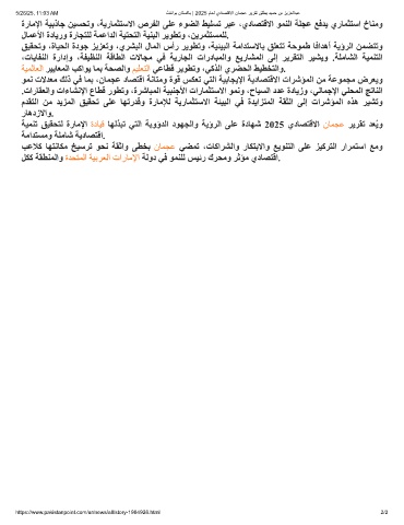 ﺔﯿﻤﻨﺗ ﻖﯿﻘﺤﺘﻟ ةرﺎﻣﻹا ةدﺎﯿﻗ ﺎﮭﻟﺬﺒﺗ ﻲﺘﻟا ﺔﺑوؤﺪﻟا دﻮﮭﺠﻟاو ﺔﯾؤﺮﻟا ﻰﻠﻋ ةدﺎﮭﺷ 2025 يدﺎﺼﺘﻗﻻا نﺎﻤﺠﻋ ﺮﯾﺮﻘﺗ ﺪﻌُﯾو