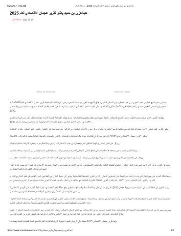5/26/25, 11:02 AM مﻼﺳﻟا ﺔﻟﺎﺳر – 2025 مﺎﻌﻟ يدﺎﺻﺗﻗﻻا نﺎﻣﺟﻋ رﯾرﻘﺗ ﻖﻠطﯾ دﯾﻣﺣ نﺑ زﯾزﻌﻟادﺑﻋ