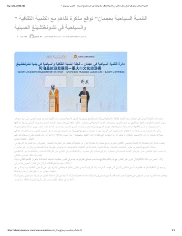 5/27/25, 8:08 AM " رﻓرﯾﺳﺑوا قرﺷﻟا | ﺔﯾﻧﯾﺻﻟا ﻎﻧﯾﺷﺗﻐﻧوﺷﺗ ﻲﻓ ﺔﯾﺣﺎﯾﺳﻟاو ﺔﯾﻓﺎﻘﺛﻟا ﺔﯾﻣﻧﺗﻟا ﻊﻣ مھﺎﻔﺗ ةرﻛذﻣ ﻊﻗوﺗ "نﺎﻣﺟﻌﺑ ﺔﯾﺣﺎﯾﺳﻟا ﺔﯾﻣﻧﺗﻟا