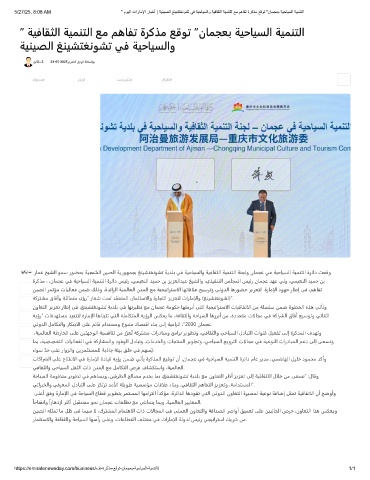 5/27/25, 8:08 AM " موﯾﻟا تارﺎﻣﻹا رﺎﺑﺧأ | ﺔﯾﻧﯾﺻﻟا ﻎﻧﯾﺷﺗﻐﻧوﺷﺗ ﻲﻓ ﺔﯾﺣﺎﯾﺳﻟاو ﺔﯾﻓﺎﻘﺛﻟا ﺔﯾﻣﻧﺗﻟا ﻊﻣ مھﺎﻔﺗ ةرﻛذﻣ ﻊﻗوﺗ "نﺎﻣﺟﻌﺑ ﺔﯾﺣﺎﯾﺳﻟا ﺔﯾﻣﻧﺗﻟا