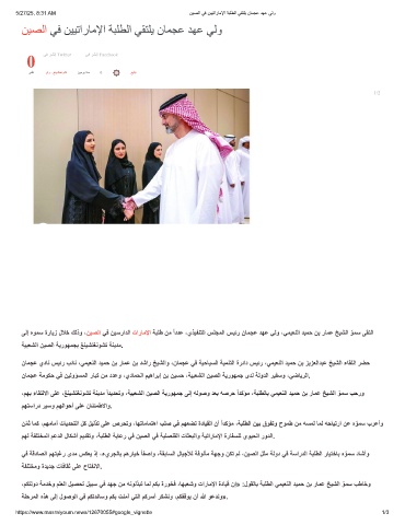 ﻰﻟإ هوﻣﺳ ةرﺎﯾز لﻼﺧ كﻟذو ،نﯾﺻﻟا ﻲﻓ نﯾﺳرادﻟا تارﺎﻣﻹا ﺔﺑﻠط نﻣ ًاددﻋ ،يذﯾﻔﻧﺗﻟا سﻠﺟﻣﻟا سﯾﺋر نﺎﻣﺟﻋ دﮭﻋ ﻲﻟو ،ﻲﻣﯾﻌﻧﻟا دﯾﻣﺣ نﺑ رﺎﻣﻋ ﺦﯾﺷﻟا ّ وﻣﺳ ﻰﻘﺗﻟا