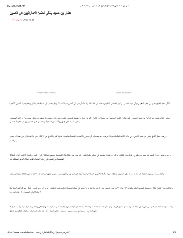 5/27/25, 8:28 AM مﻼﺳﻟا ﺔﻟﺎﺳر – نﯾﺻﻟا ﻲﻓ نﯾﯾﺗارﺎﻣﻹا ﺔﺑﻠطﻟا ﻲﻘﺗﻠﯾ دﯾﻣﺣ نﺑ رﺎّﻣﻋ
