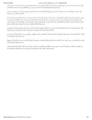 ﻮﻋﺪﻧو ،ﻢﻜﺘﻟود ﺔﻣﺪﺧو ﻢﻠﻌﻟا ﻞﻴﺼﺤﺗ ﻞﻴﺒﺳ ﻲﻓ ﺪﻬﺟ ﻦﻣ ﻪﻧﻮﻟﺬﺒﺗ ﺎﻤﻟ ﻢﻜﺑ ةرﻮﺨﻓ ،ﺎﻬﺒﻌﺷو تارﺎﻣإلا ةدﺎﻴﻗ نإ“ :لﻮﻘﻟﺎﺑ ﺔﺒﻠﻄﻟا ﻲﻤﻴﻌﻨﻟا ﺪﻴﻤﺣ ﻦﺑ رﺎﻤﻋ ﺦﻴﺸﻟا ﻮﻤﺳ ﺐﻃﺎﺧو