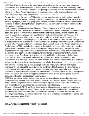 5/20/25, 10:41 AM Ajman Department of Tourism Development to participate for first time in IMEX International Exhibition
