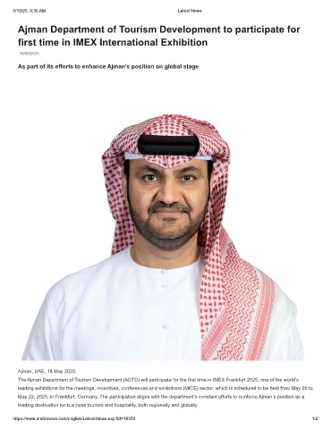 The Ajman Department of Tourism Development (ADTD) will participate for the first time in IMEX Frankfurt 2025, one of the world’s