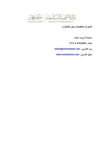 : ـﺑ لﺎ ﺗﻻا ﻰﺟ ﯾ ،تﺎﻣ ﻠﻌ ﻟا ﻣ ﻠﻟ ﻧﻼﺑ روأ ﺔﻋ ﻣ +971 4 4562888 :ﻒﺗﺎﻫ media@orientplanet.com :ﻲﻧو ﻟا ﺑ www.orientplanet.com :ﻲﻧو ﻟا ﻊﻗ ﻣ