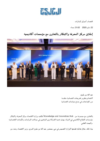 رﺎﺘﺑﻻاو ﺔﻓﺮﻌﻤﻟا ﺰﻛﺮﻣ دﺎﺼﺘﻗﻻا ةرازو ﺖﻘﻠﻃأ Knowledge and Innovation Hub، ﻦﻣ ﺔﻋﻮﻤﺠﻣ ﻊﻣ نوﺎﻌﺘﻟﺎﺑ