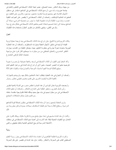ﻲﻓ مﻠﻌﺗﻟاو مﯾﻠﻌﺗﻠﻟ ﻲﻋﺎﻧطﺻﻻا ءﺎﻛذﻟا ﺔﻧﺟﻟ وﺿﻋ ،ﺢﻠﺻﻣﻟا دﻣﺣﻣ روﺗﻛدﻟا دﻛؤﯾ ،ﮫﺗﮭﺟ نﻣ