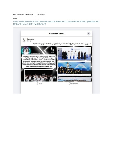 Publication: Facebook- B UAE News Link: https://www.facebook.com/buaenews/posts/pfbid032cAQ1UooApNG97RieJ9TbNt2fpksaZUphx9d QTCaVTJMwhUxAtSMNy7pdd2yFEzNl