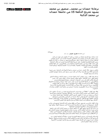 5/1/25, 10:01 AM ﺔﯾﻛذﻟا دﻣﺣﻣ نﺑ نادﻣﺣ ﺔﻌﻣﺎﺟ نﻣ 15 ﺔﻌﻓدﻟا ﺞﯾرﺧﺗ دﮭﺷﯾ دﻣﺣﻣ نﺑ روﺻﻧﻣ ..دﻣﺣﻣ نﺑ نادﻣﺣ ﺔﯾﺎﻋرﺑ