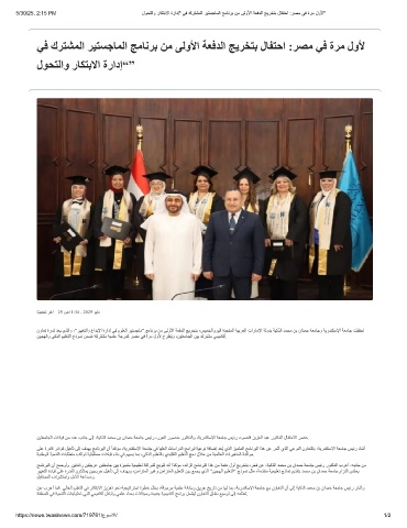نوﺎﻌﺗ ةﺮﻤﺛ ﺪﻌﯾ ىﺬﻟاو ،”ﺮﯿﯿﻐﺘﻟاو عاﺪﺑﻹا ةرادإ ﻲﻓ مﻮﻠﻌﻟا ﺮﯿﺘﺴﺟﺎﻣ“ ﺞﻣﺎﻧﺮﺑ ﻦﻣ ﻰﻟوﻷا ﺔﻌﻓﺪﻟا ﺞﯾﺮﺨﺘﺑ ،ﺲﯿﻤﺨﻟا مﻮﯿﻟا ةﺪﺤﺘﻤﻟا ﺔﯿﺑﺮﻌﻟا تارﺎﻣﻹا ﺔﻟوﺪﺑ ﺔﯿﻛﺬﻟا ﺪﻤﺤﻣ ﻦﺑ ناﺪﻤﺣ ﺔﻌﻣﺎﺟو ﺔﯾرﺪﻨﻜﺳﻹا ﺔﻌﻣﺎﺟ ﺖﻠﻔﺘﺣا