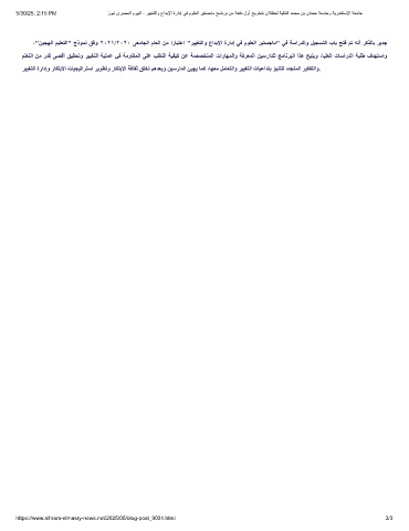 5/30/25, 2:15 PM زوﯾﻧ ىرﺻﻣﻟا مرﮭﻟا - رﯾﯾﻐﺗﻟاو عادﺑﻹا ةرادإ ﻲﻓ موﻠﻌﻟا رﯾﺗﺳﺟﺎﻣ ﺞﻣﺎﻧرﺑ نﻣ ﺔﻌﻓد لوأ ﺞﯾرﺧﺗﺑ نﻼﻔﺗﺣﺗ ﺔﯾﻛذﻟا دﻣﺣﻣ نﺑ نادﻣﺣ ﺔﻌﻣﺎﺟو ﺔﯾردﻧﻛﺳﻹا ﺔﻌﻣﺎﺟ