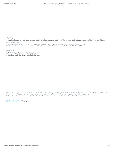 2. ﺔﯾﻣﻟﺎﻌﻟا تﺎﯾدﺣﺗﻟا ﺔﮭﺟاوﻣﻟ لﺎﻣﻋﻷا داورو ةدﺎﻘﻟا لﯾھﺄﺗ ﻲﻓ ﺔﯾﻠﺑﻘﺗﺳﻣ ﺔﯾؤر سﻛﻌﯾ ﺞﻣﺎﻧرﺑﻟا اذھ ﻲﻓ نﯾﺗﻌﻣﺎﺟﻟا نﯾﺑ نوﺎﻌﺗﻟاو ﻖﯾﺳﻧﺗﻟا.