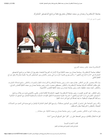 ﺮﯿﺘﺴﺟﺎﻤﻟا ﺞﻣﺎﻧﺮﺑ ﻦﻣ ﺔﻌﻓد لوأ ﺞﯾﺮﺨﺘﺑ ،ةﺪﺤﺘﻤﻟا ﺔﯿﺑﺮﻌﻟا تارﺎﻣﻹا ﺔﻟوﺪﺑ ﺔﯿﻛﺬﻟا ﺪﻤﺤﻣ ﻦﺑ ناﺪﻤﺣ ﺔﻌﻣﺎﺟو ،ﺔﯾرﺪﻨﻜﺳﻹا ﺔﻌﻣﺎﺟ ﺖﻠﻔﺘﺣا