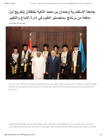 5/30/25, 2:12 PM يرﺻﻣ مﻠﻌﺗﻧ - «رﯾﯾﻐﺗﻟاو عادﺑﻹا ةرادإ ﻲﻓ موﻠﻌﻟا رﯾﺗﺳﺟﺎﻣ» ﺞﻣﺎﻧرﺑ نﻣ ﺔﻌﻓد لوأ ﺞﯾرﺧﺗﺑ نﻼﻔﺗﺣﺗ ﺔﯾﻛذﻟا دﻣﺣﻣ نﺑ نادﻣﺣو ﺔﯾردﻧﻛﺳﻹا ﺎﺗﻌﻣﺎﺟ