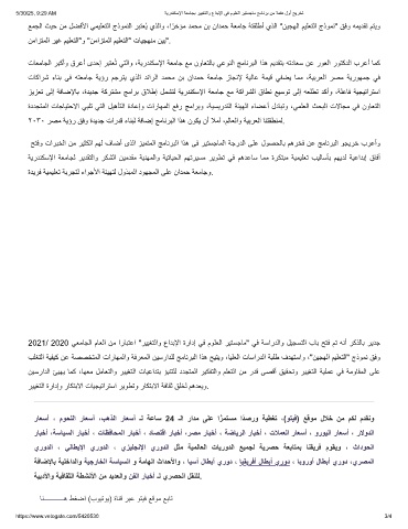 تﺎﻌﻣﺎﺟﻟا رﺑﻛأو قرﻋأ ىدﺣإ رﺑﺗﻌُﺗ ﻲﺗﻟاو ،ﺔﯾردﻧﻛﺳﻹا ﺔﻌﻣﺎﺟ ﻊﻣ نوﺎﻌﺗﻟﺎﺑ ﻲﻋوﻧﻟا ﺞﻣﺎﻧرﺑﻟا اذھ مﯾدﻘﺗﺑ ﮫﺗدﺎﻌﺳ نﻋ روﻌﻟا روﺗﻛدﻟا برﻋأ ﺎﻣﻛ
