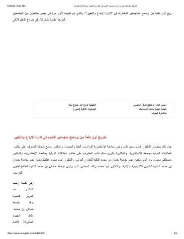 5/30/25, 9:29 AM ﺔﯾردﻧﻛﺳﻹا ﺔﻌﻣﺎﺟﺑ رﯾﯾﻐﺗﻟاو عادﺑﻹا ﻲﻓ موﻠﻌﻟا رﯾﺗﺳﺟﺎﻣ ﺞﻣﺎﻧرﺑ نﻣ ﺔﻌﻓد لوأ ﺞﯾرﺧﺗ