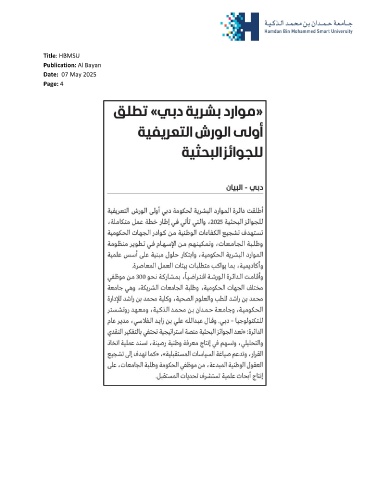 Title: HBMSU Publication: Al Bayan Date: 07 May 2025 Page: 4