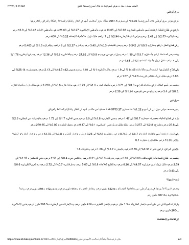 مھرد 16.9 ﻰﻟإ %2.42 «لوﻷا ﻲﺑظوﺑأ»و مھرد 21.66 ﻰﻟإ %2.27 «ﻲﻣﻼﺳﻹا ﻲﺑظوﺑأ»و ،مھرد 13.65 ﻰﻟإ %5.08 «يرﺎﺟﺗﻟا ﻲﺑظوﺑأ» مﮭﺳأ تﻌﻔﺗرا ،ﺔﯾﻟﺎﻣﻟا عﺎطﻗ ﻲﻓ ﻊﻔﺗراو