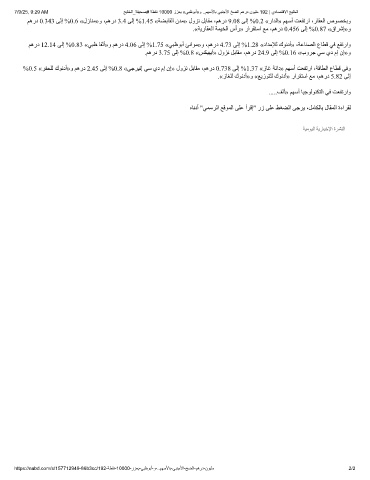 ﻢھرد 12.14 ﻰﻟإ %0.83 «ﻲﺒظ ﺎﻔﻟأ»و ﻢھرد 4.06 ﻰﻟإ %1.75 «ﻲﺒظﻮﺑأ ﺊﻧاﻮﻣ»و ،ﻢھرد 4.73 ﻰﻟإ %1.28 «داﺪﻣﻺﻟ كﻮﻧدأ» ،ﺔﻋﺎﻨﺼﻟا عﺎﻄﻗ ﻲﻓ ﻊﻔﺗراو