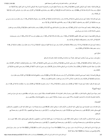 رارﻘﺗﺳا ﻊﻣ ،مھرد 5.8 ﻰﻟإ %0.34 «رﻔﺣﻠﻟ كوﻧدأ»و ،مھرد 3.69 ﻰﻟإ %1.07 «ﻊﯾزوﺗﻠﻟ كوﻧدأ» لوزﻧ لﺑﺎﻘﻣ ،مھرد 0.746 ﻰﻟإ %1 «زﺎﻏ ﺔﻧاد» مﮭﺳأ تﻌﻔﺗرا ،ﺔﻗﺎطﻟا عﺎطﻗ ﻲﻓو