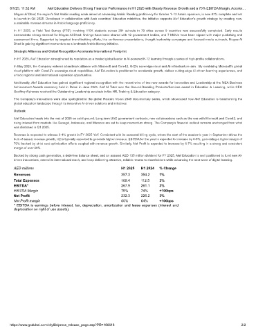 8/1/25, 11:32 AM Alef Education Delivers Strong Financial Performance in H1 2025 with Steady Revenue Growth and a 75% EBITDA Margin, Acceler…