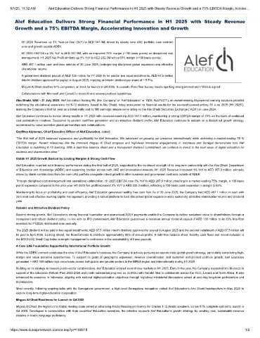 8/1/25, 11:32 AM Alef Education Delivers Strong Financial Performance in H1 2025 with Steady Revenue Growth and a 75% EBITDA Margin, Acceler…