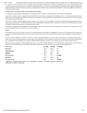 8/1/25, 11:32 AM Alef Education Delivers Strong Financial Performance in H1 2025 with Steady Revenue Growth and a 75% EBITDA Margin, Acceler…