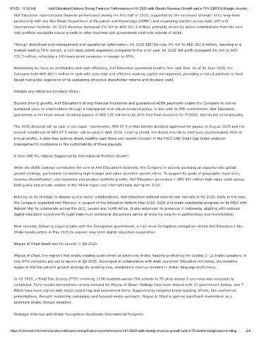 8/1/25, 11:32 AM Alef Education Delivers Strong Financial Performance in H1 2025 with Steady Revenue Growth and a 75% EBITDA Margin, Acceler…