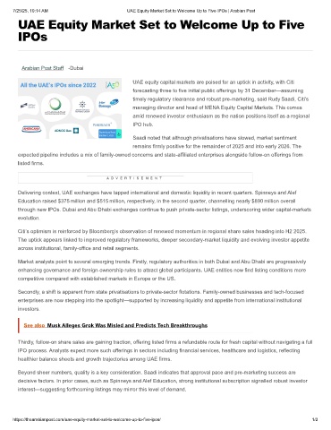7/25/25, 10:14 AM UAE Equity Market Set to Welcome Up to Five IPOs | Arabian Post
