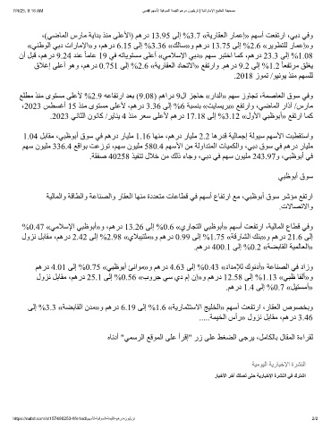 %0.47 «ﻲﻣﻼﺳﻹا ﻲﺒظﻮﺑأ»و ،ﻢھرد 13.26 ﻰﻟإ %0.6 «يرﺎﺠﺘﻟا ﻲﺒظﻮﺑأ» ﻢﮭﺳأ ﺖﻌﻔﺗرا ،ﺔﯿﻟﺎﻤﻟا عﺎﻄﻗ ﻲﻓو
