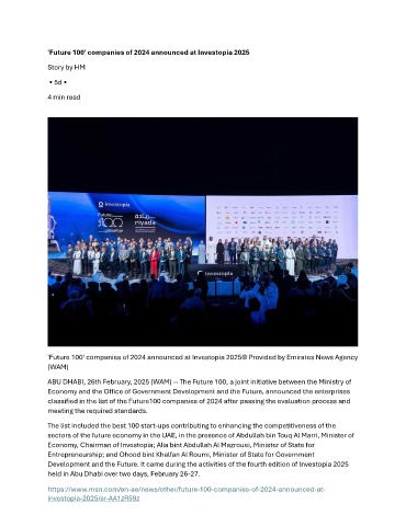 'Future 100' companies of 2024 announced at Investopia 2025© Provided by Emirates News Agency