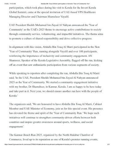 3/3/25, 11:53 AM Abdulla Bin Touq Al Marri participates in Kerala's 'Year of Community Run'