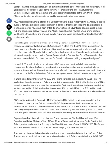 3/3/25, 9:09 AM UAE, Poland explore new areas of trade, economic cooperation