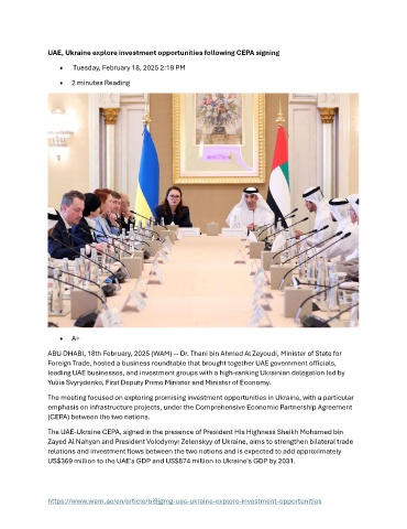 leading UAE businesses, and investment groups with a high-ranking Ukrainian delegation led by