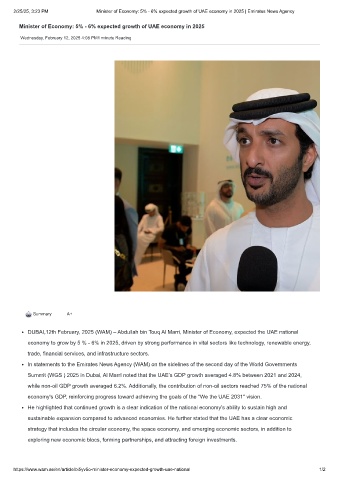 2/25/25, 3:23 PM Minister of Economy: 5% - 6% expected growth of UAE economy in 2025 | Emirates News Agency