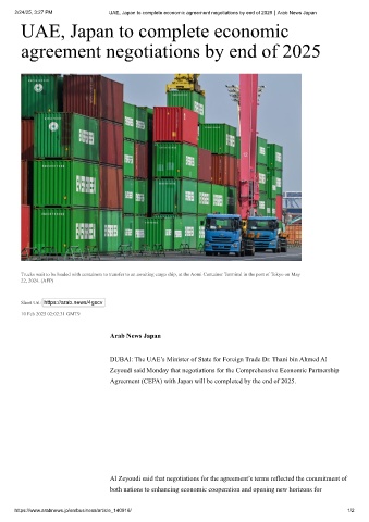 2/24/25, 3:27 PM UAE, Japan to complete economic agreement negotiations by end of 2025|Arab News Japan
