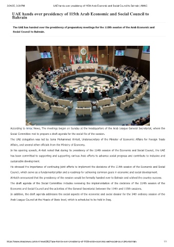 https://www.amacnews.com/en/news/2827/uae-hands-over-presidency-of-115th-arab-economic-and-social-council-to-bahrain 1/1