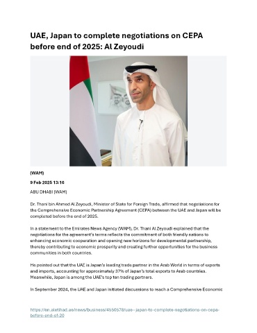 In September 2024, the UAE and Japan initiated discussions to reach a Comprehensive Economic